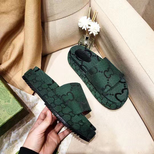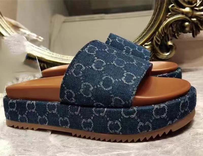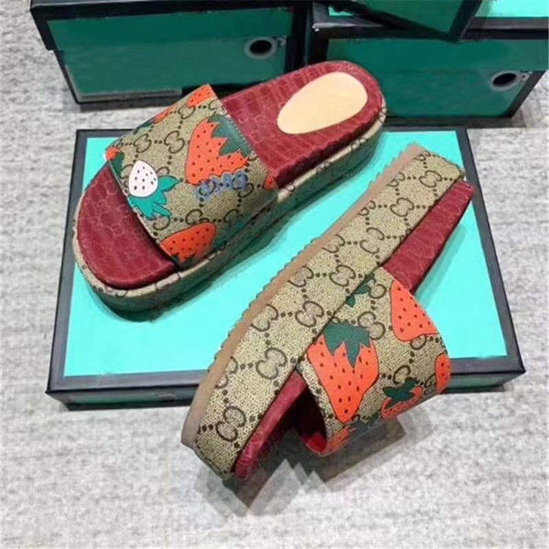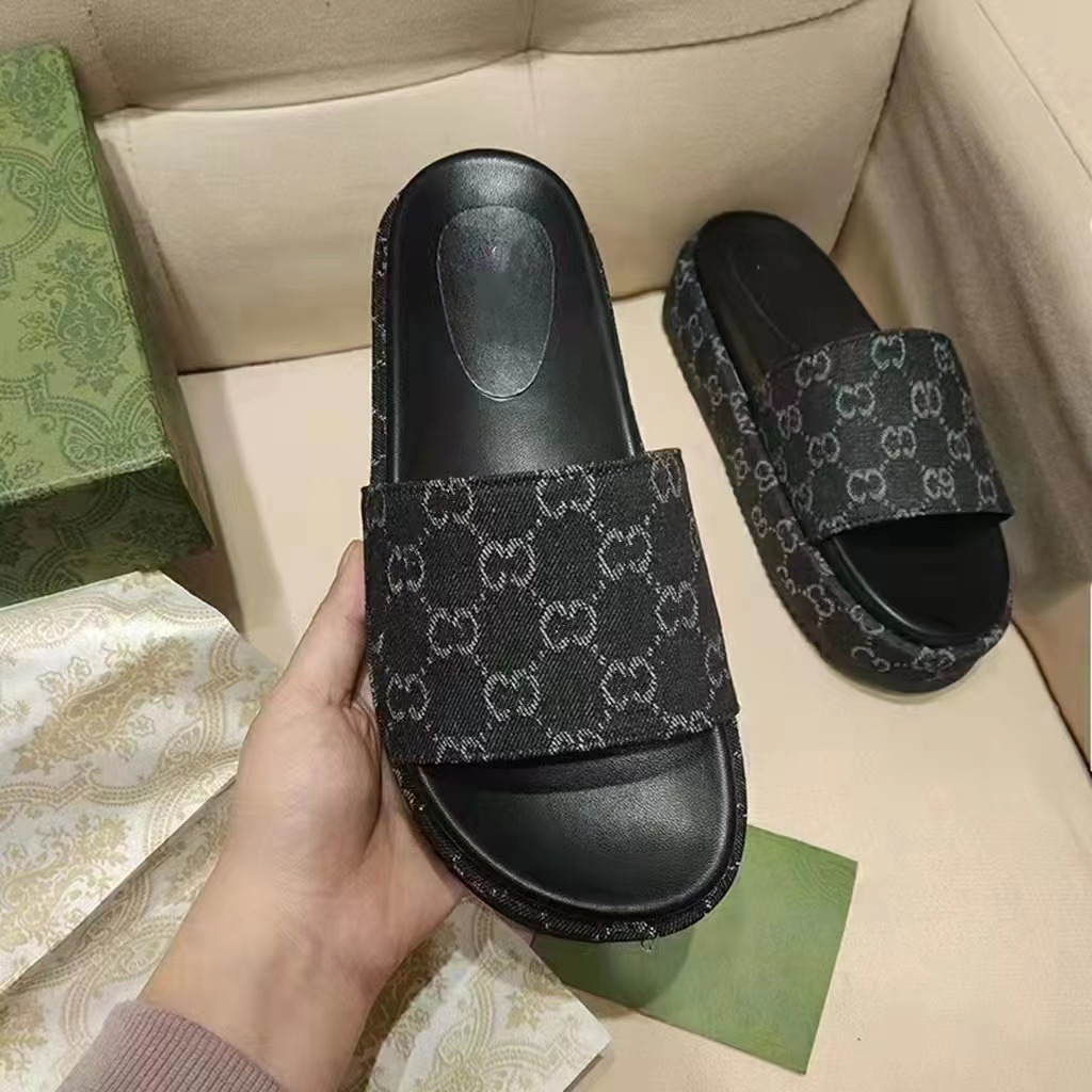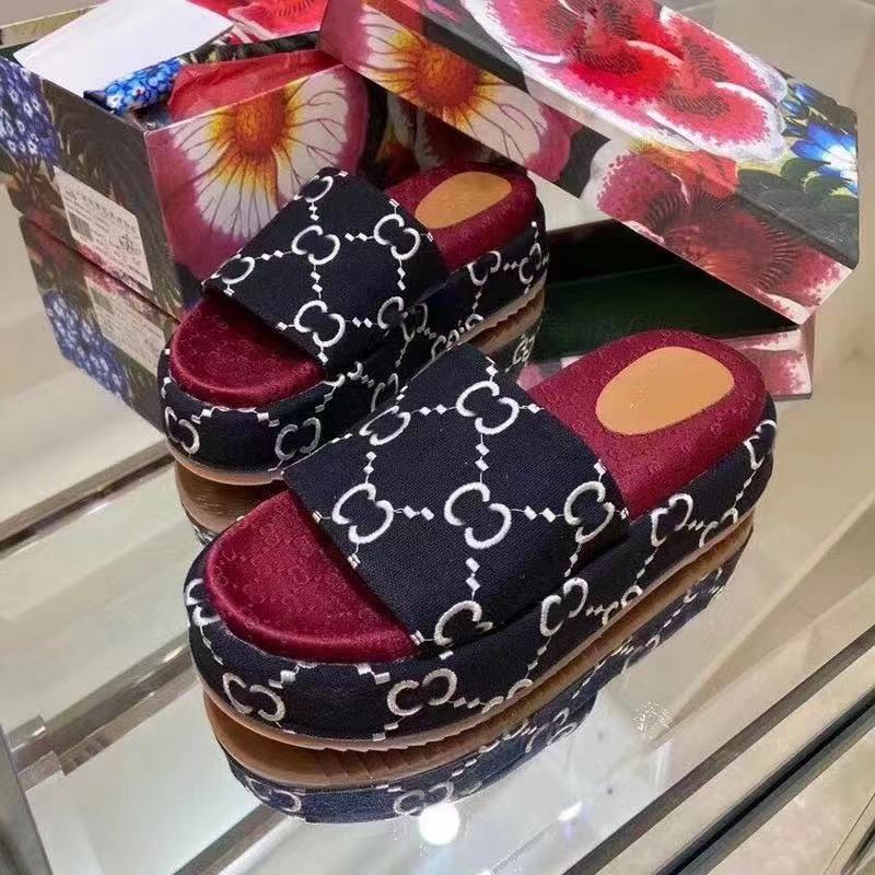 New Women's Gucci Style Platform Sandals Floral Embroidery Logo Slippers Outdoor Casual Slide Shoes