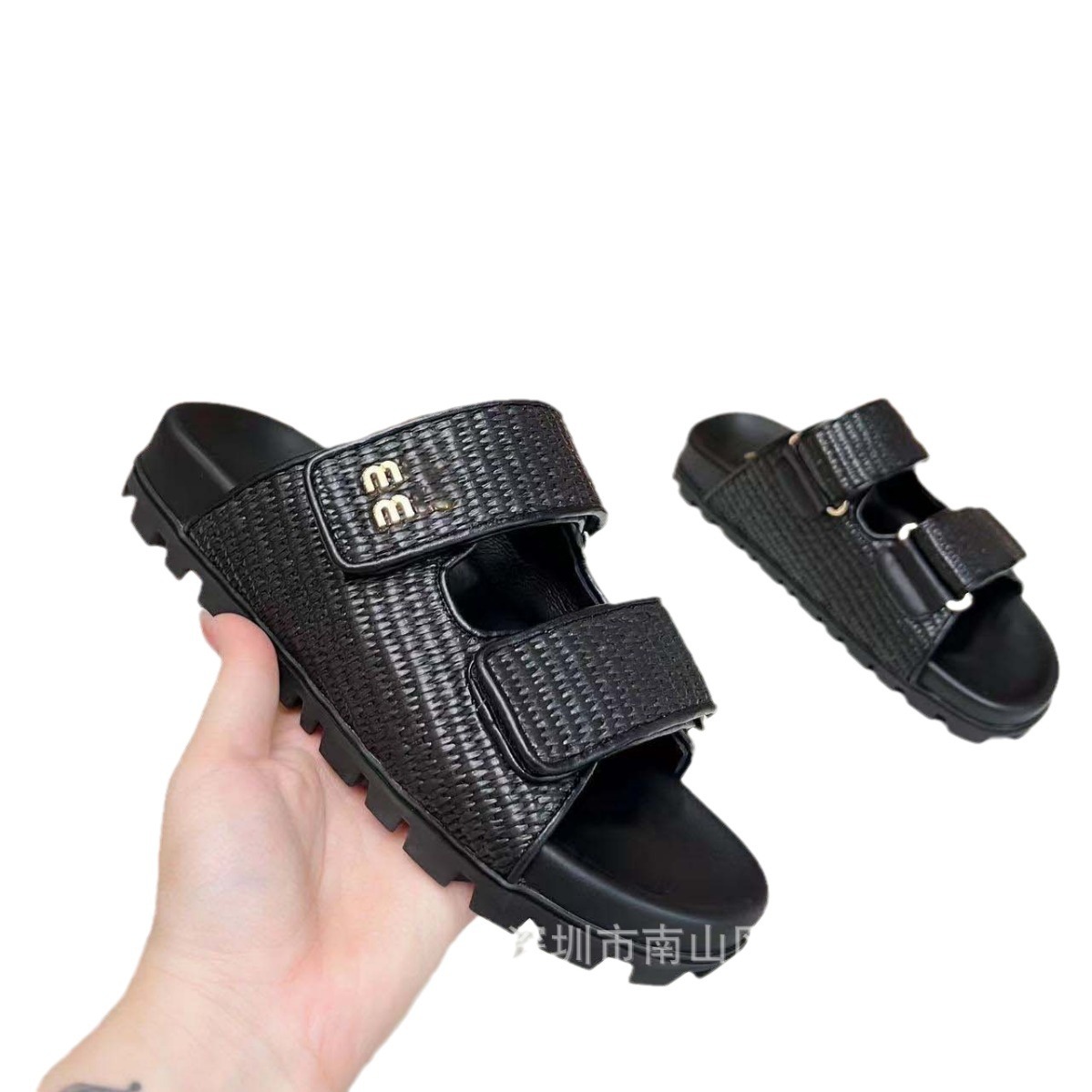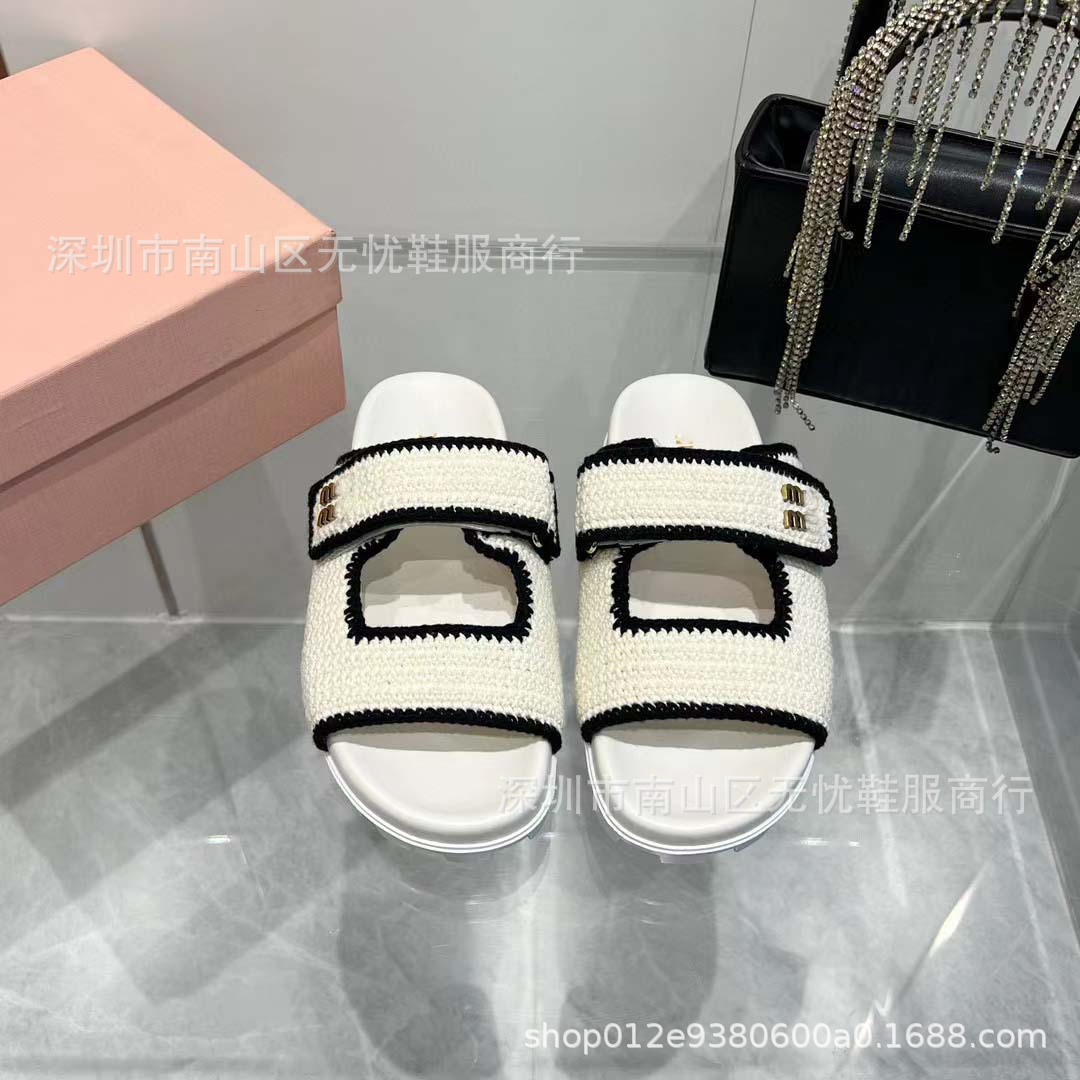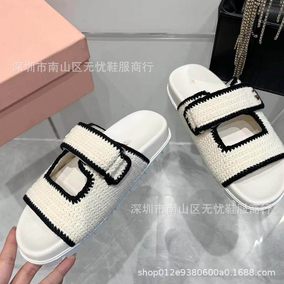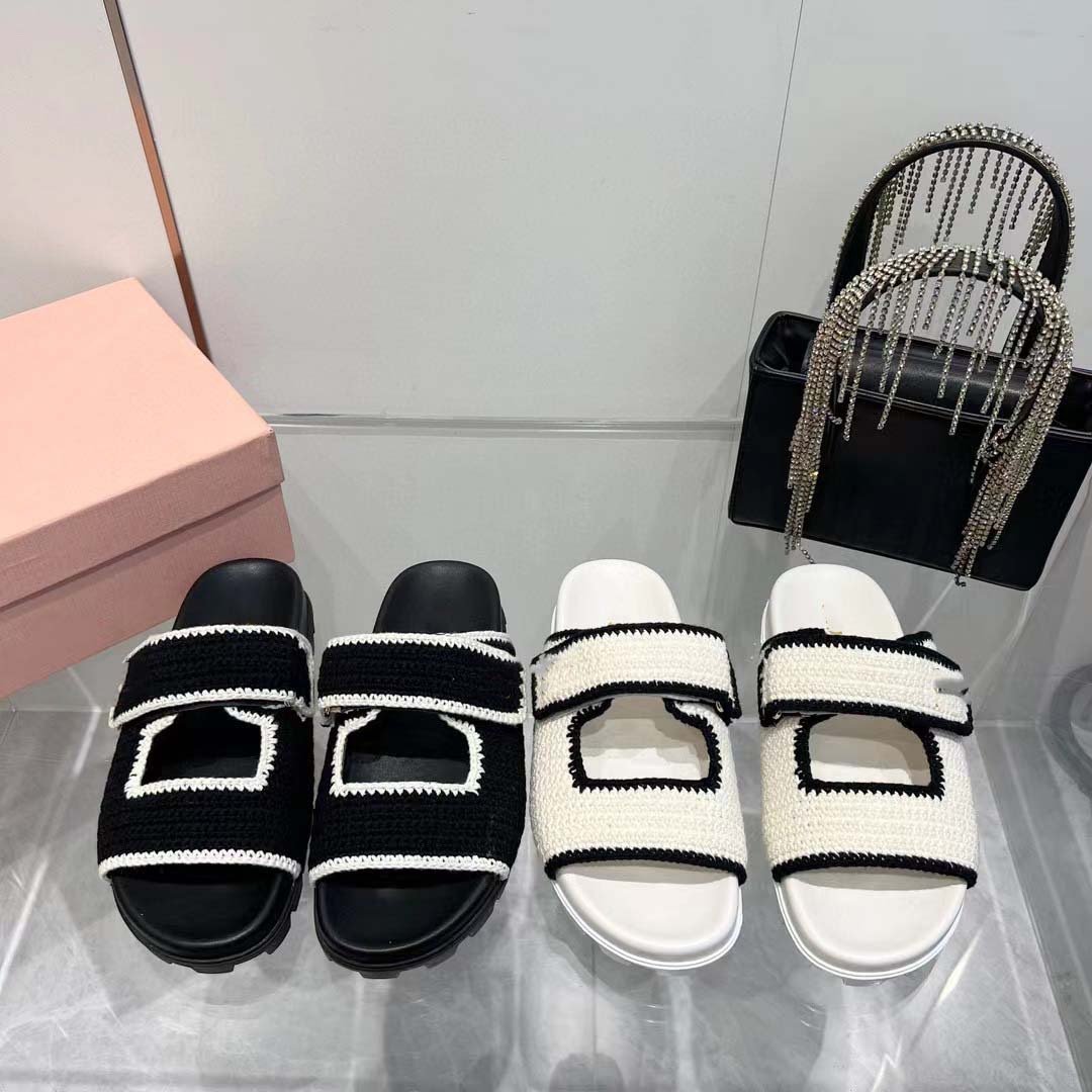 🔥Viral Miu Miu Style Slides! Women's Woven Platform Sandals Luxury Outdoor Slippers with Velcro