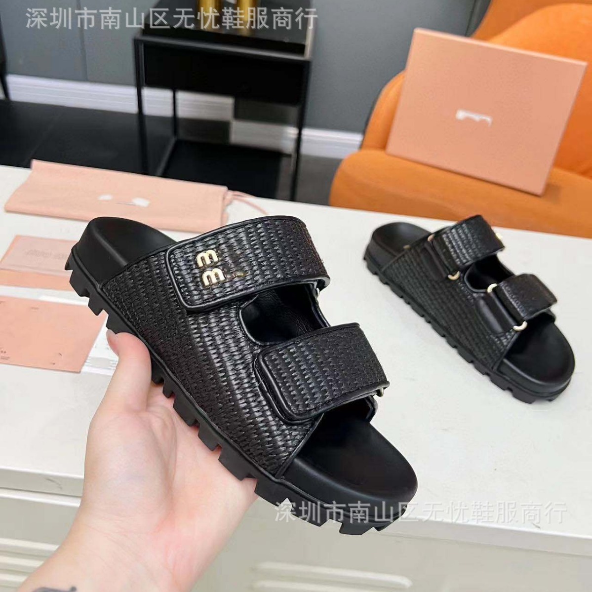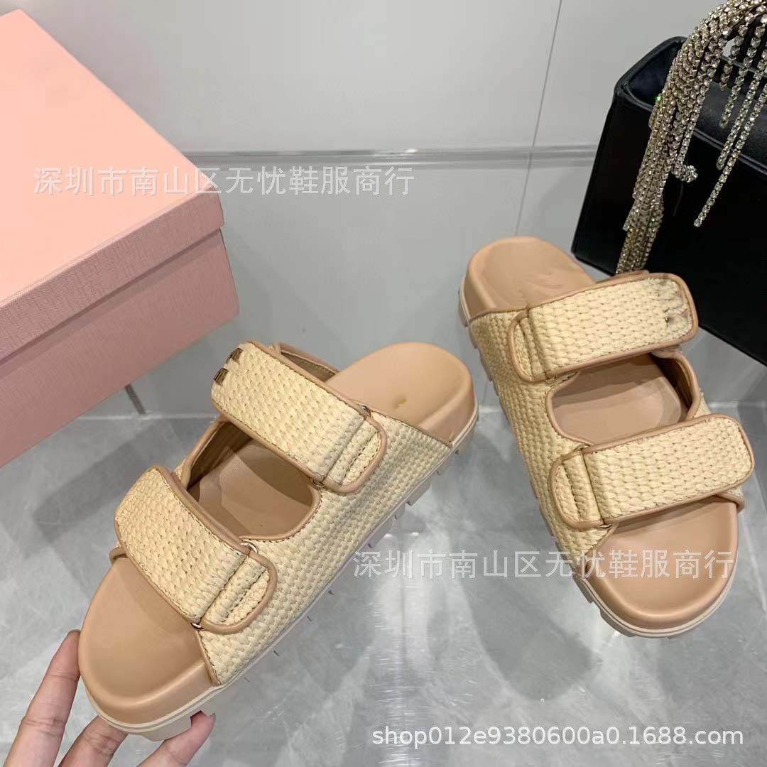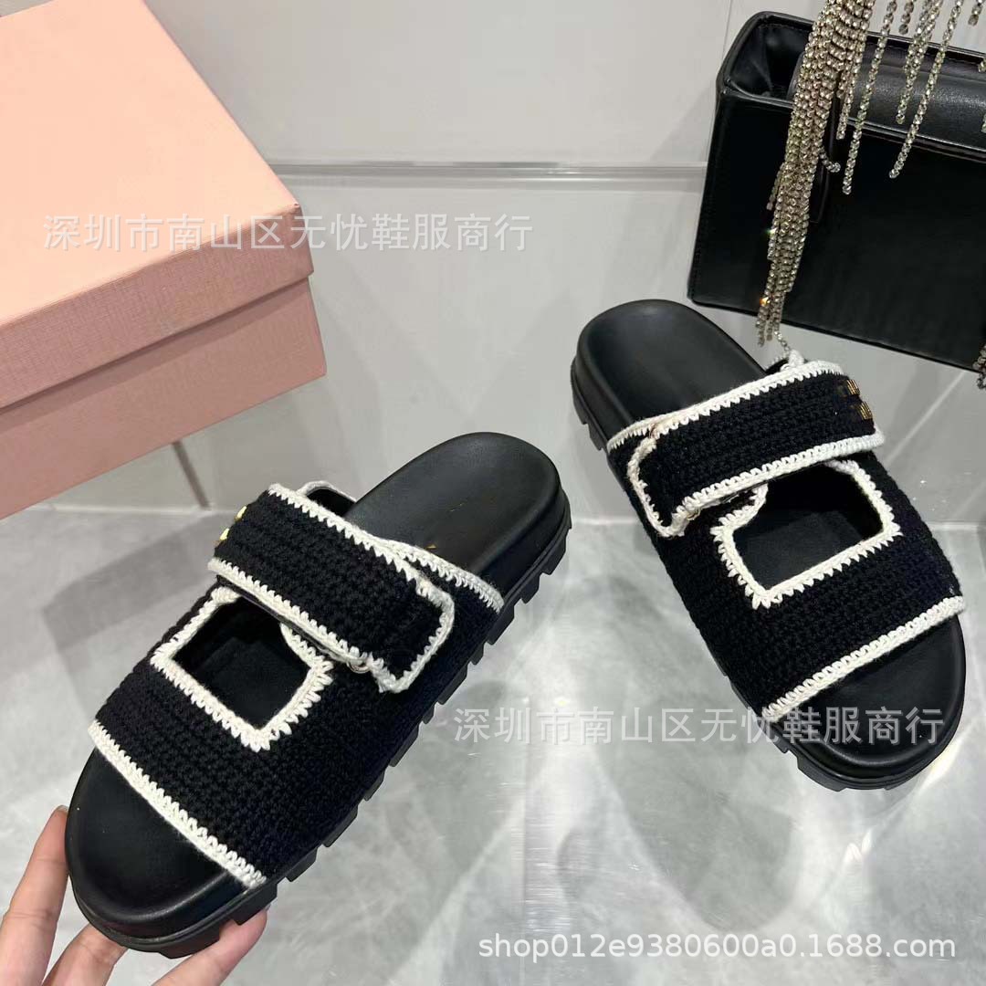 🔥Viral Miu Miu Style Slides! Women's Woven Platform Sandals Luxury Outdoor Slippers with Velcro